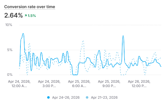 How to measure it: Meta Ads Manager won't show you this directly which means you need to pull it from your Shopify analytics or wherever you track site performance. Take the number of orders generated from your Meta traffic and divide it by the number of sessions Meta sent to your site. If you're using UTM parameters on your ad URLs, you can filter this cleanly in Google Analytics. For a more granular view, look at conversion rate by landing page URL so you can see which specific pages are converting traffic and which ones are leaking.